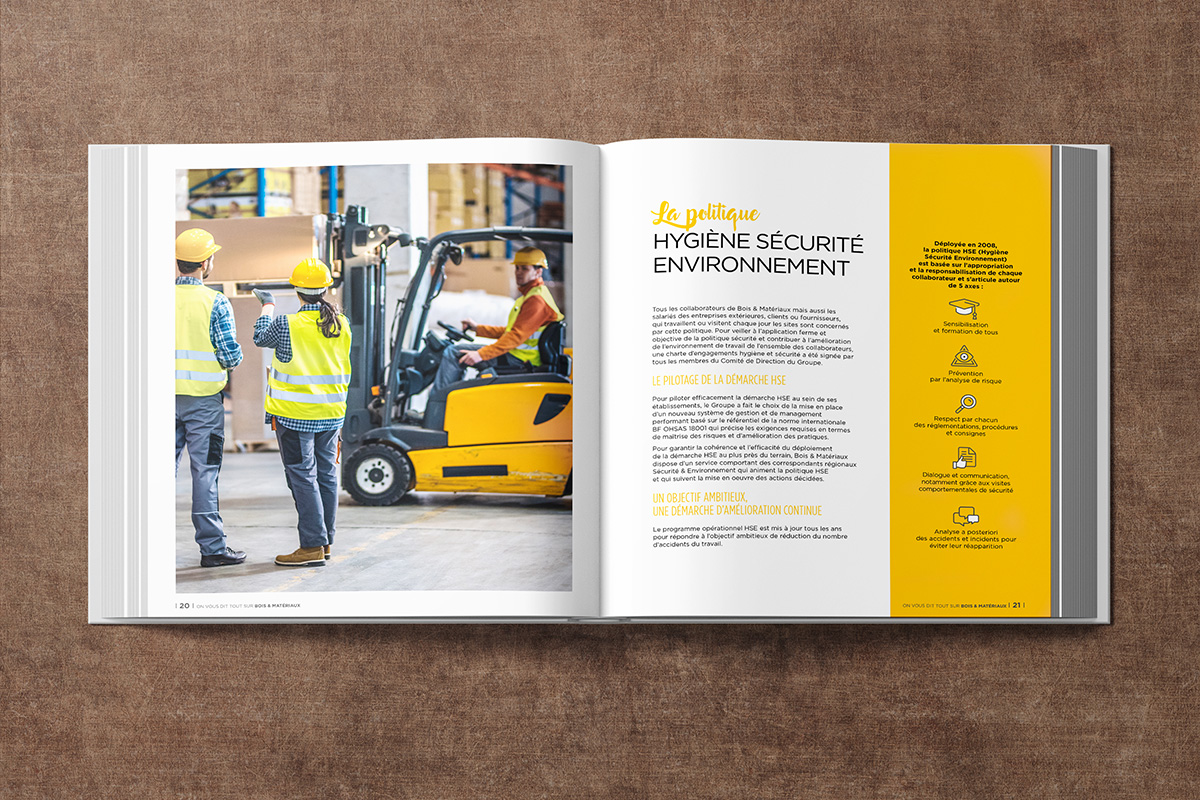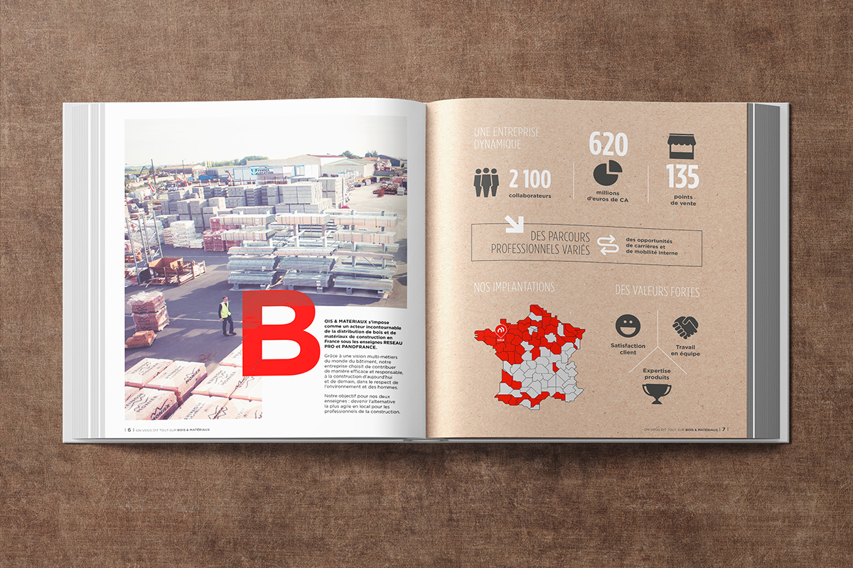 Création de la maquette et de l’identité graphique d’un livret interne uniquement mis à disposition des collaborateurs Bois & Matériaux. Travail effectué pour le compte de l’agence Précontact.